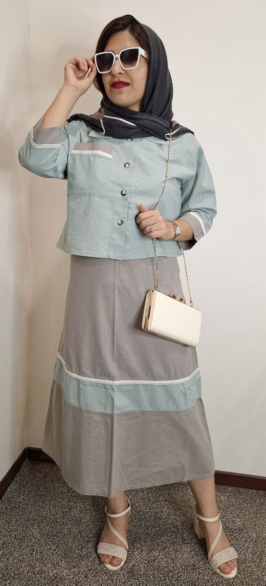 دورسینه 110، قد کت 51، قد سارافون 120، قد آستین 40، انداره سرشانه 14