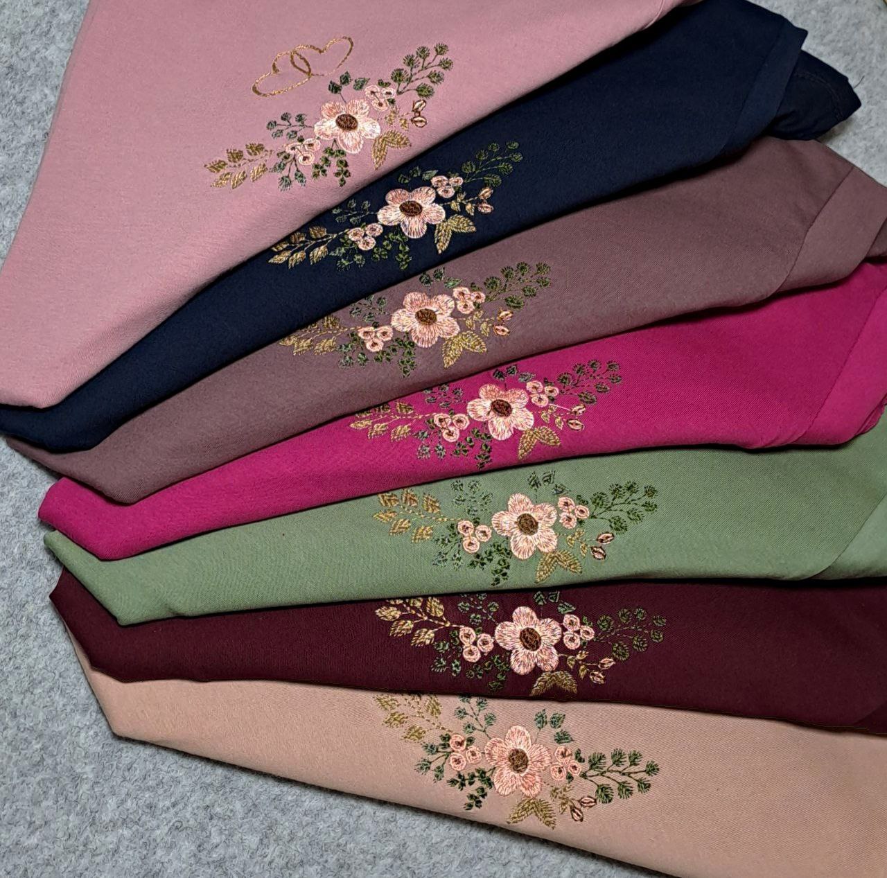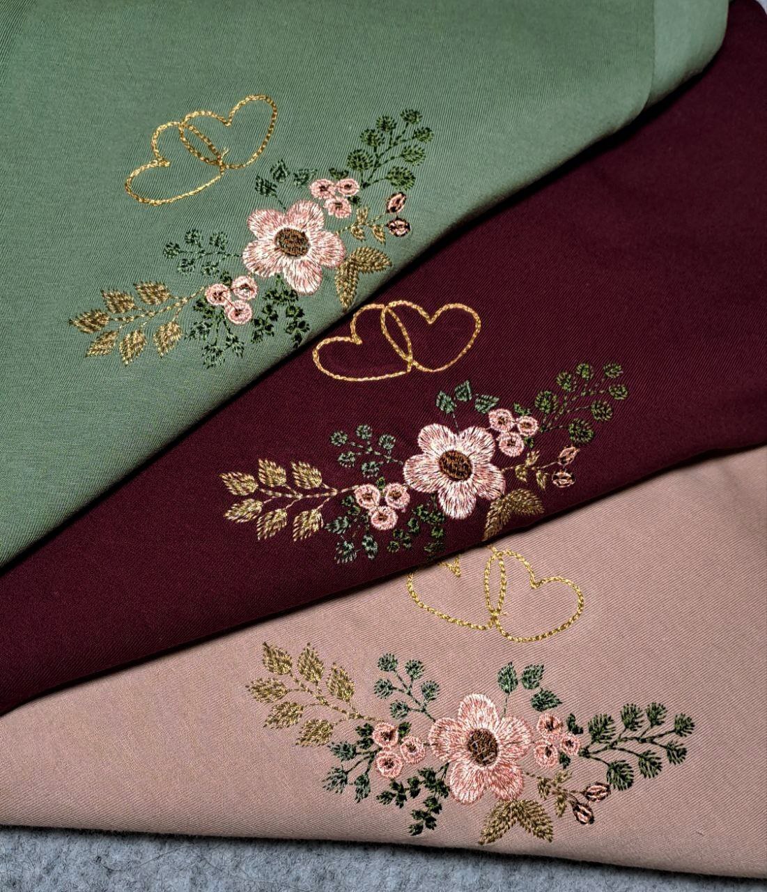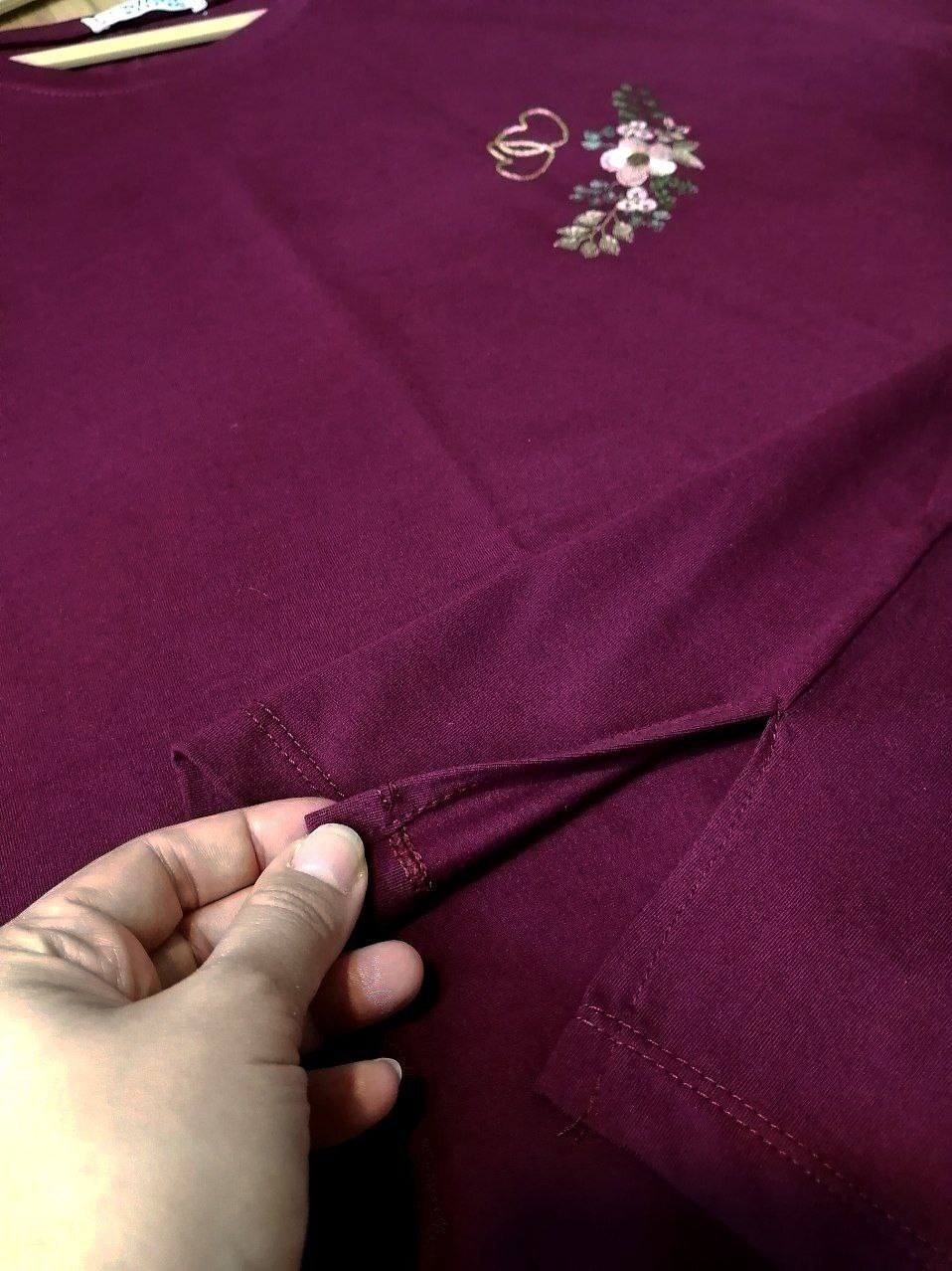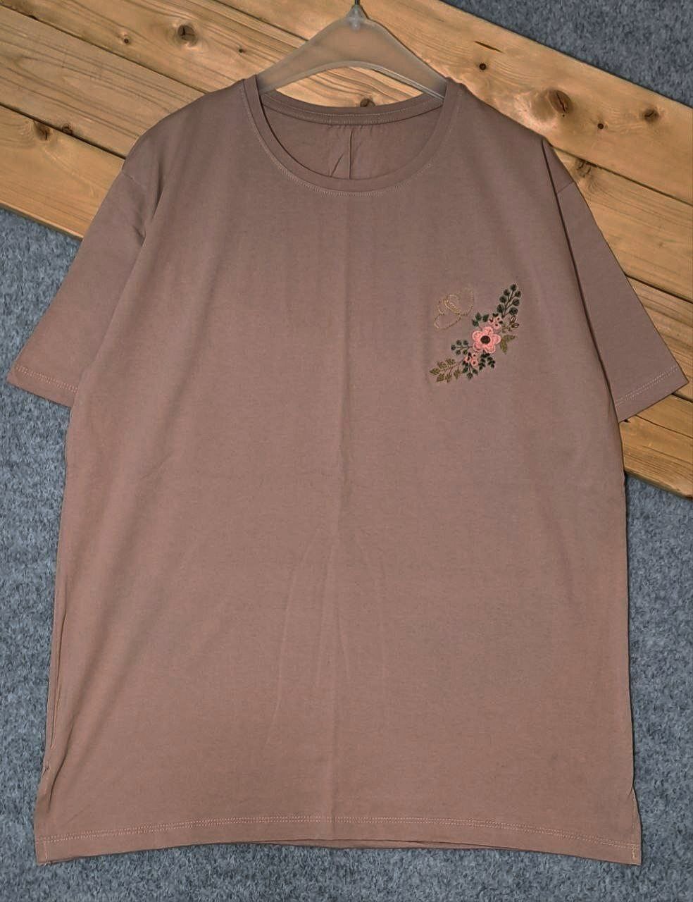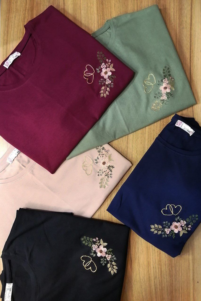 تیشرت آستین کوتاه گلدوزی زنانه بغل چاکدار طرح گل و قلب